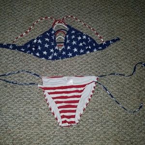 Top is a large but bottoms are a medium...too small for my butt???? bought at target, never worn but no tags. Super cute