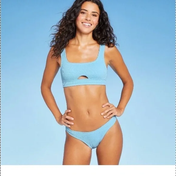 Xhilaration texture light blue cheeky high leg scoop bikini bottom size XL NWT