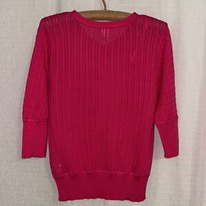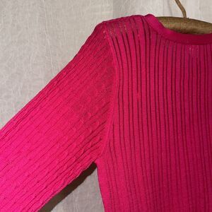 Target 8 Fuchsia Pink Crewneck Cable Knit Lightweight Quart Sl Pullover Sweater