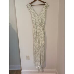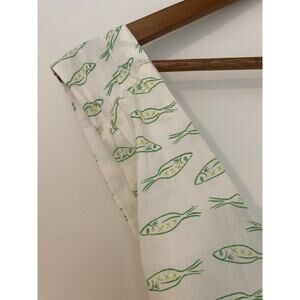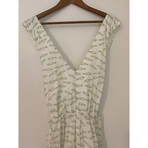 Target A New Day Cream Green White Fish Print Maxi Dress Tie Open Back EUC L