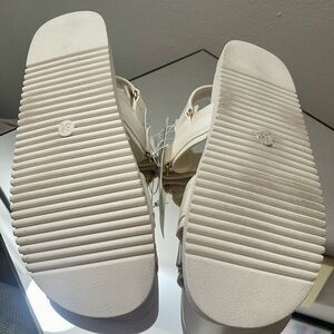 NWT sandals, never been worn. Trendy cream sandals with adjustable straps. Perfect for casual outings.
