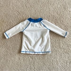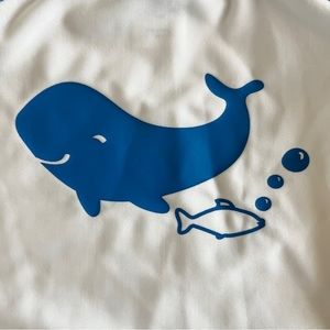 Good condition blue and white rash guard for baby boy with adorable whale detail on the front. 3-6 month size.