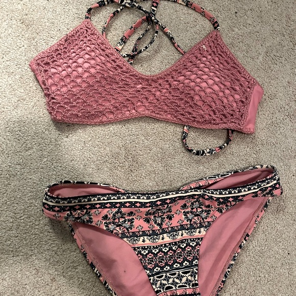 Top: crisscross back and adjustable tie straps; Size M; padded Bottoms: Size S