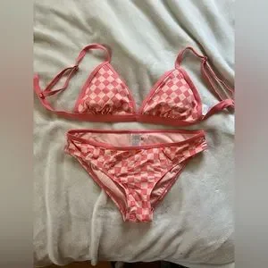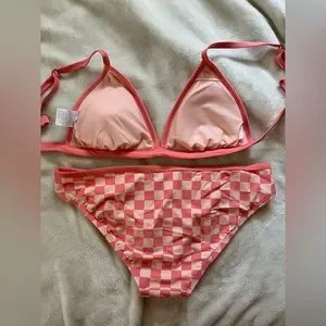 Target's Kona Sol checkered bathing suit bikini set. Only worn once. Size medium in both top & bottom. the bottoms are medium coverage, adjustable straps on top. can change the straps so they make a cross back.