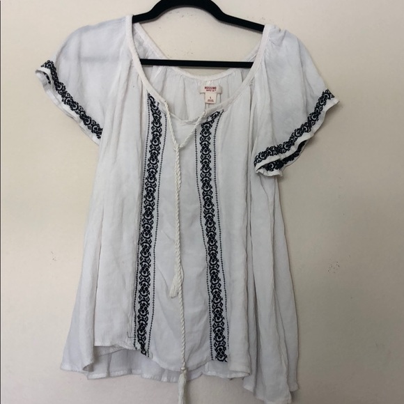 Very cute and flowy Target blouse. Super pretty floral navy blue details. Looks great on!