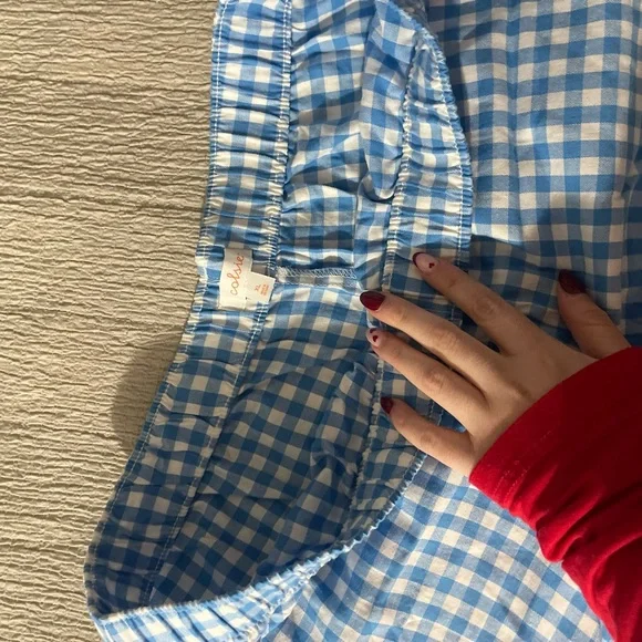 Comfortable gingham pajama pants. Elastic waistband. Soft fabric.
