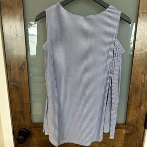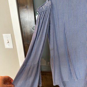 Target blue and white striped flowy long sleeve blouse, bell sleeves, cut out shoulders, size XS, (runs like a small)