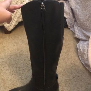 Worn 1 time. Bottoms are still in great condition. There are no stretch marks or scuffs. They are a zip up boot with a stretchy back for you calf.