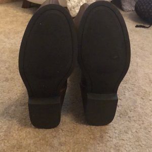 I have worn these a few times, but the bottoms are still in great condition. There are 2 scuffs on 1 boot, but not noticeable if you’re not looking for it. There is also a stretchy back for your calf