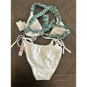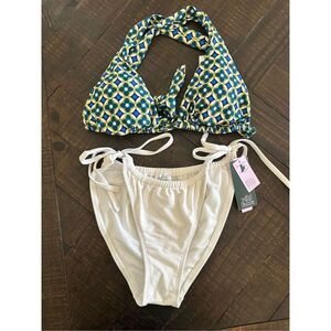 Target Brands Green and White Classic Tie Side Bikini Set Size Small New
