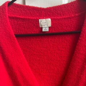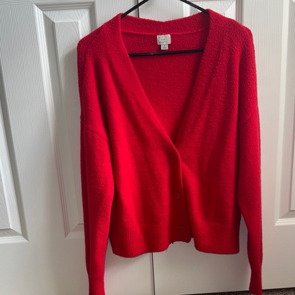 Vibrant red button-front cardigan from Target. Soft knit with a relaxed silhouette. Long sleeves and ribbed hem. Easy layering piece for everyday wear.