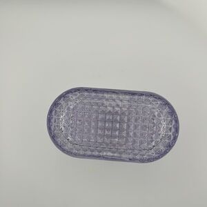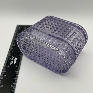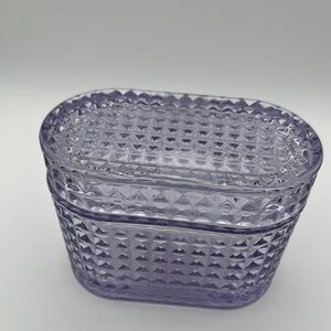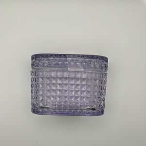 Elegant purple glass container with a textured design. Perfect for storage or decoration.