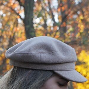 Chic brown newsboy cap. Perfect for any casual outfit.