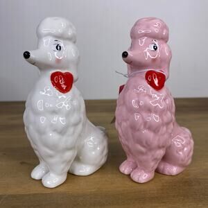 - Set of TWO Valentine Ceramic Poodle Figurines in White and Pink