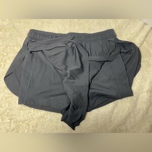 Comfortable charcoal shorts for exercise or lounging. Elastic waistband for a secure fit.
