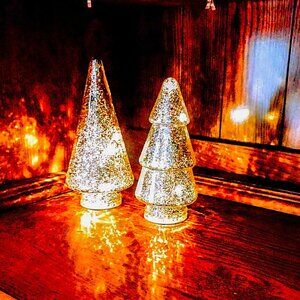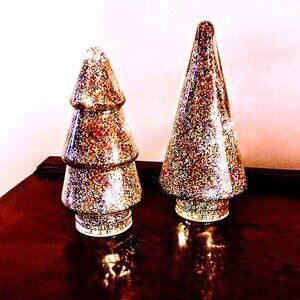 Target Christmas 2024 Glittered-Filled LED LIGHTED Glass Trees Set of 2 NEW wTAG