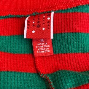 Target Christmas Collection Holiday Striped Jumpsuit. Adult women's one piece red and green striped thermal jumpsuit. Snap front buttons for easy pull on styling. Worn once for Christmas.