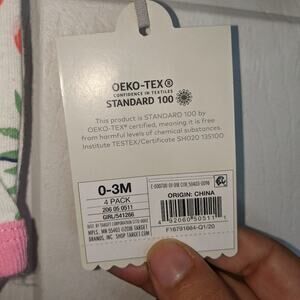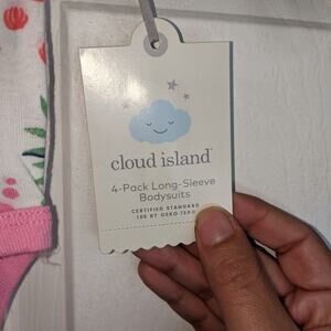 Target Cloud Island 4 Pack Long Sleeve Bodysuits Onesies Spring Florals & Patterns Size 0-3 Months. EUC. NWT. Brand new never been worn. Certified Standard 100 by Oeko-Tex which means it's free from harmful levels of chemical substances. All bodysuits are 100% Cotton except for the dark blue one which is 60% Cotton 40% Recycled Polyester.