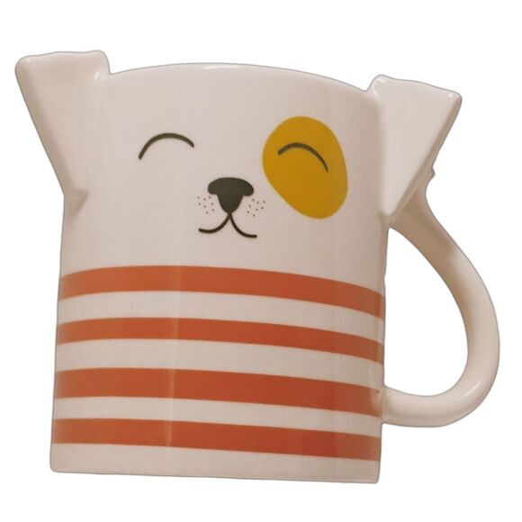 Target Coffee Tea Mug Pup 3D Ears Ceramic 16 Oz Parker Lane Dog Red Strippes Cup