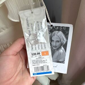 Charming cream mini dress with ruffle details. Button-down front. Perfect for casual outings.