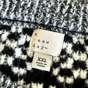 Target Crewneck Sweater A New Day Black and White Fair Isle Apres Size XXL NWT