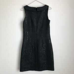 Timeless little black dress that looks amazing! Simple yet detailed with lovely embossed pattern. Size 4.