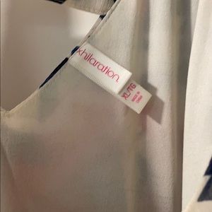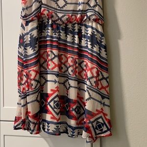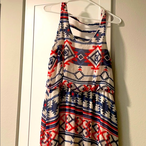 White dress with red and blue design