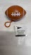 Football-shaped key chain with poncho. Brown with white accents. Compact and portable.