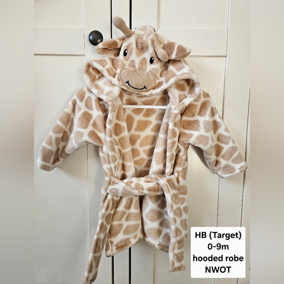 Adorable giraffe hooded baby robe from Target. Super soft plush fabric with a cute giraffe face and ears on the hood. Includes waist tie and cozy design perfect for after bath time.