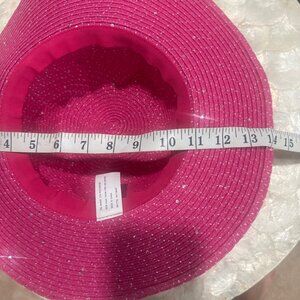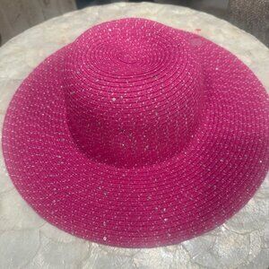 Silver sequins and silver stitching add a beautiful sparkle to this pink hat