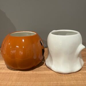 Like new, gently used Target brand pumpkin and ghost mugs.
