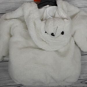 Brand new, puffy cream colored with specks of silver, so adorable, includes pullover, polyester, button closure.