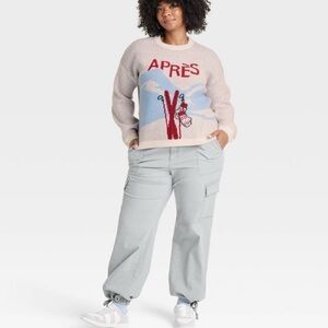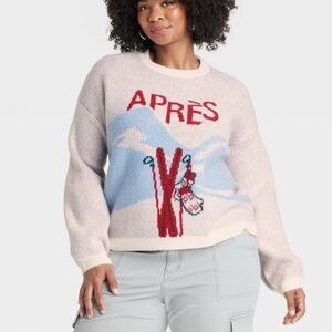 Target Holiday Crewneck Sweater A New Day Cream Blue Red Apres Ski Size XXL 2024