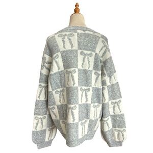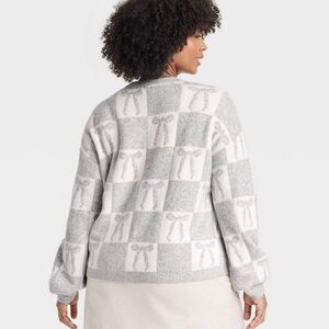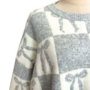 Target Holiday Crewneck Sweater A New Day Gray Cream Bow Size 1X New With Tags