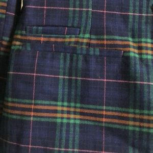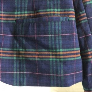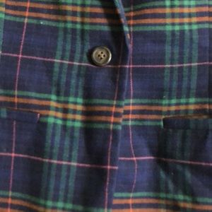 Target plaid jacket with one button for closing. 2 front pockets and 1 small one with matching pants