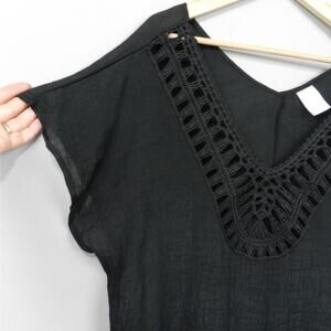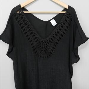 Target Kona Sol Swim Cover Up Size M Sheer Black Gauzey Crochet Cut Out V Neck