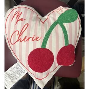 Target “Ma Cherie” Heart Cherries Plush Pillow Pink Stripes 12” New
