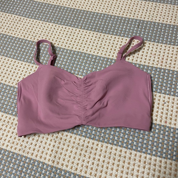 Stylish mauve bralette with ruched front. Adjustable straps for comfort.