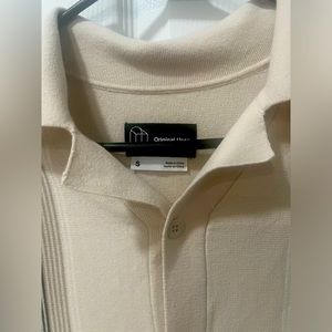 Men’s Small Knitted shirt Tan with stripes. Washed once and never been worn except for fitting.