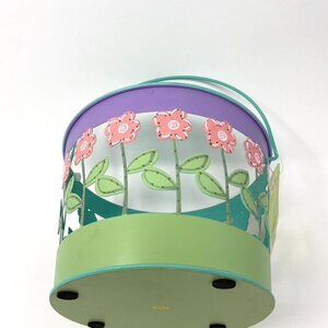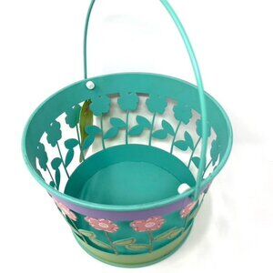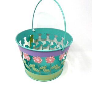 Target Metal Easter Basket Pail Pink Glitter Flowers