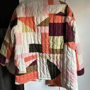 Stylish patchwork design. Features vibrant colors. Perfect for cool weather.