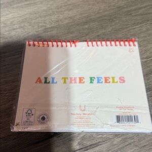 Spiral notebook with a blue smiley face. Features 'All The Feels' text in multicolor. Perfect for notes and doodles.