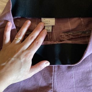Bought these at Target last year and I’ve grown out of them. They’re like a lavender mauve color with white pinstripes! They are in good condition and ready to find a new home. Zipper on the side, faux back pockets, very clean business chic look. Office casual pants. Stretchy top band!