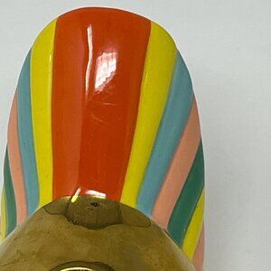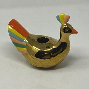 Oh Joy! for Target peacock bird vase. Ceramic vase with gold-toned metallic finish on top. Rainbow-style pastel stripes at tail and top of head. Gently used, in very good used condition. Some fingerprints/wear on exterior. A few dark marks on the inside, not visible when filled. See photos. Measures approximately 7" x 6". From Joy Cho’s 2017 collaboration with Target.