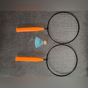 Enjoy outdoor fun with this Target badminton set. Includes two orange rackets and a colorful shuttlecock.