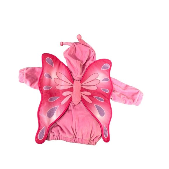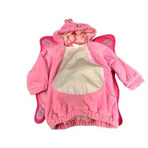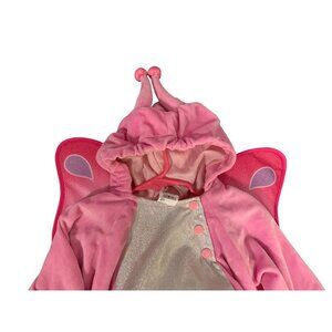 Adorable pink butterfly costume. Features hood and wings. Perfect for Halloween fun.