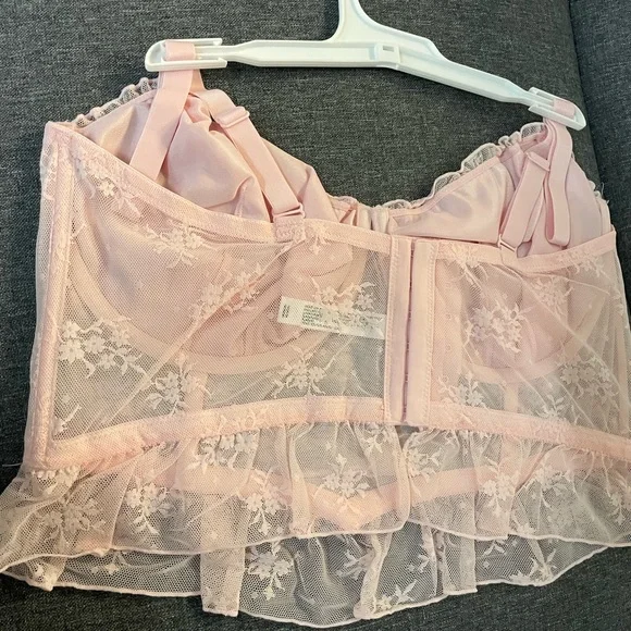 Chic pink lace bralette with floral details. Soft and stylish for everyday wear.