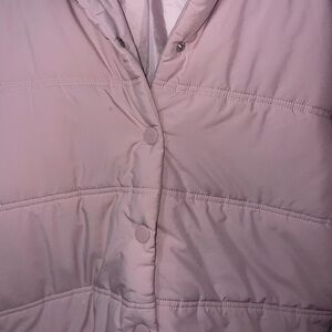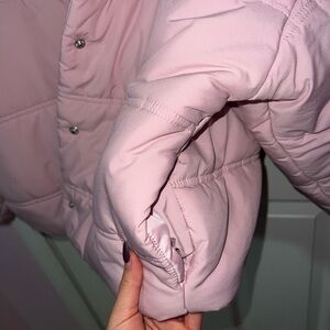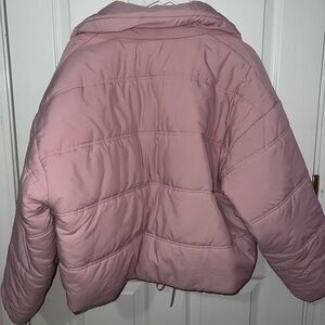 Pretty baby pink puffer jacket from target’s line Wild Fable. No zipper, buttons only and has pockets as shown in the photos. Women size M.