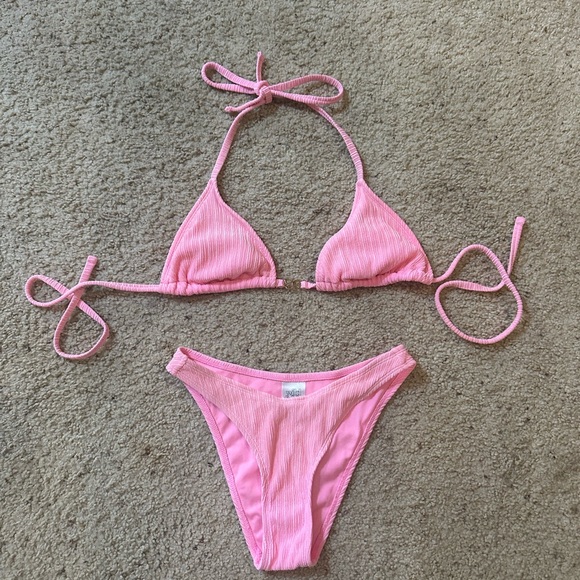 Target Pink Ribbed Swimsuit Set