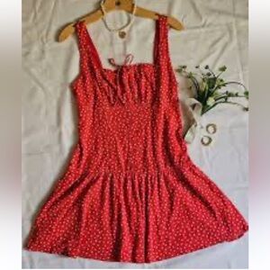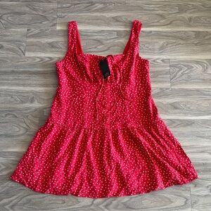 Vibrant red top with white star design. Made with recycled polyester.
